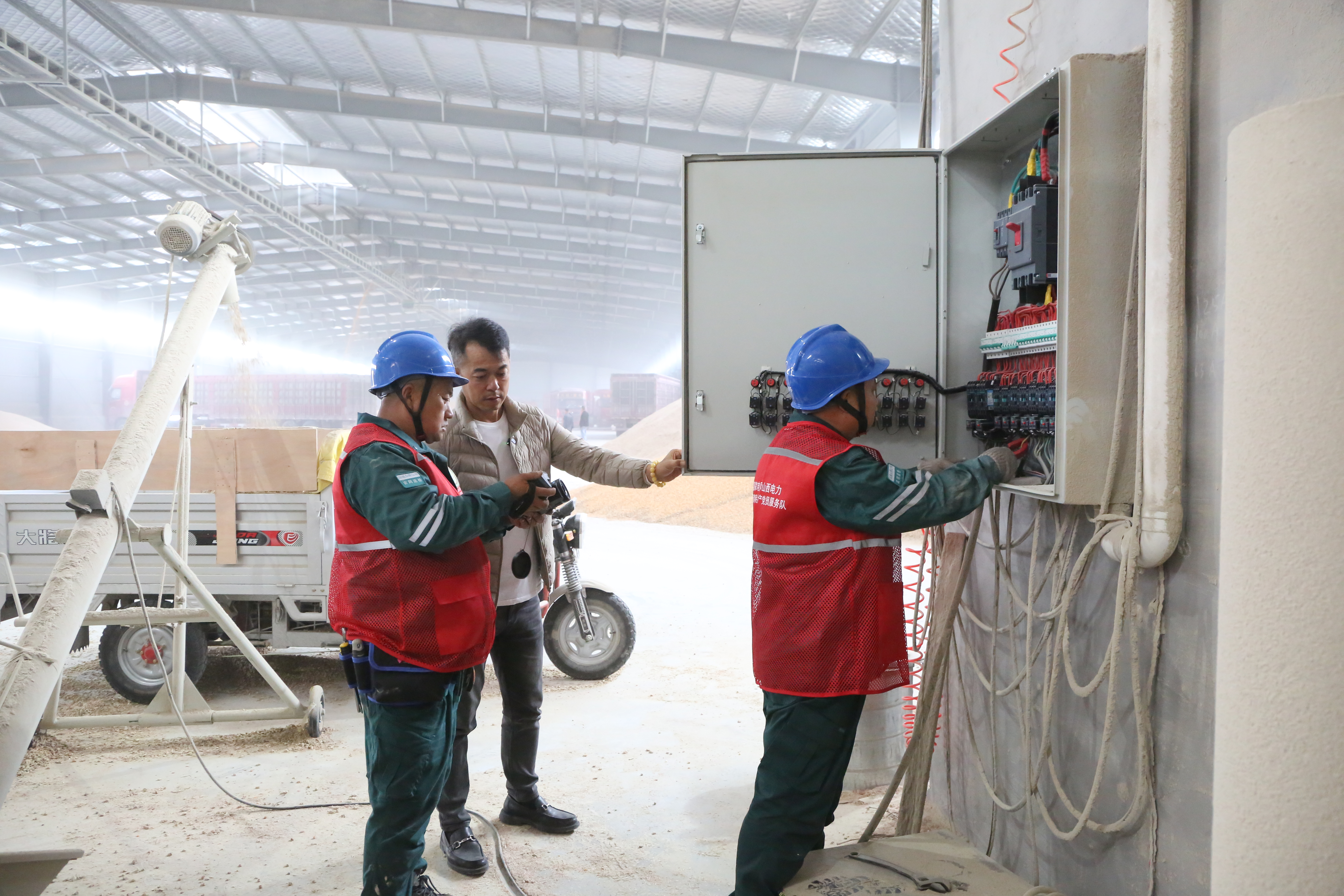 近日,山西省運(yùn)城市遭遇連續(xù)陰雨天氣,秋糧收割后濕糧晾曬難、易霉變問(wèn)題凸顯,糧食烘干需求緊急。10月11日,運(yùn)城供電公司組織共產(chǎn)黨員服務(wù)隊(duì)與青年突擊隊(duì)前往運(yùn)城市達(dá)鑫豐農(nóng)業(yè)開(kāi)發(fā)有限公司開(kāi)展用電設(shè)備特巡,以全鏈條電力保障舉措,助力秋糧安全歸倉(cāng)。